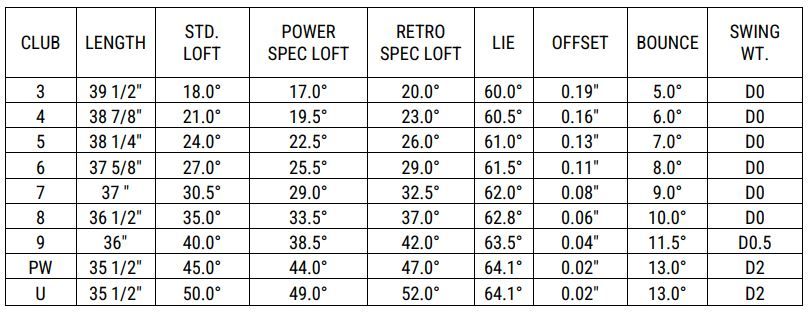 i525 IRON SPECIFICATIONS RH & LH