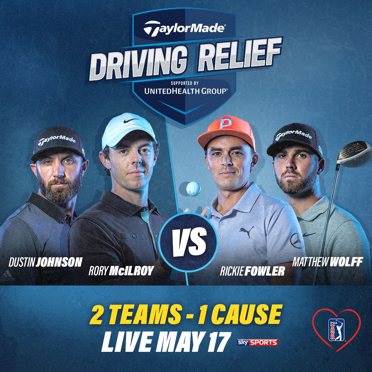 On Sunday, May 17, from Seminole Golf Club, TaylorMade Driving Relief will feature two-time FedExCup champion and World No. 1 Rory McIlroy and 20-time PGA TOUR winner Dustin Johnson, teaming up against two Oklahoma State University alumni: PGA TOUR superstar Rickie Fowler and 2019 first-time TOUR winner and 2019 NCAA National Champion Matthew Wolff. The competition will follow strict CDC social distancing guidelines, local mandates and will utilise appropriate testing measures to help protect the health and safety of the golfers, production crew and others on site.