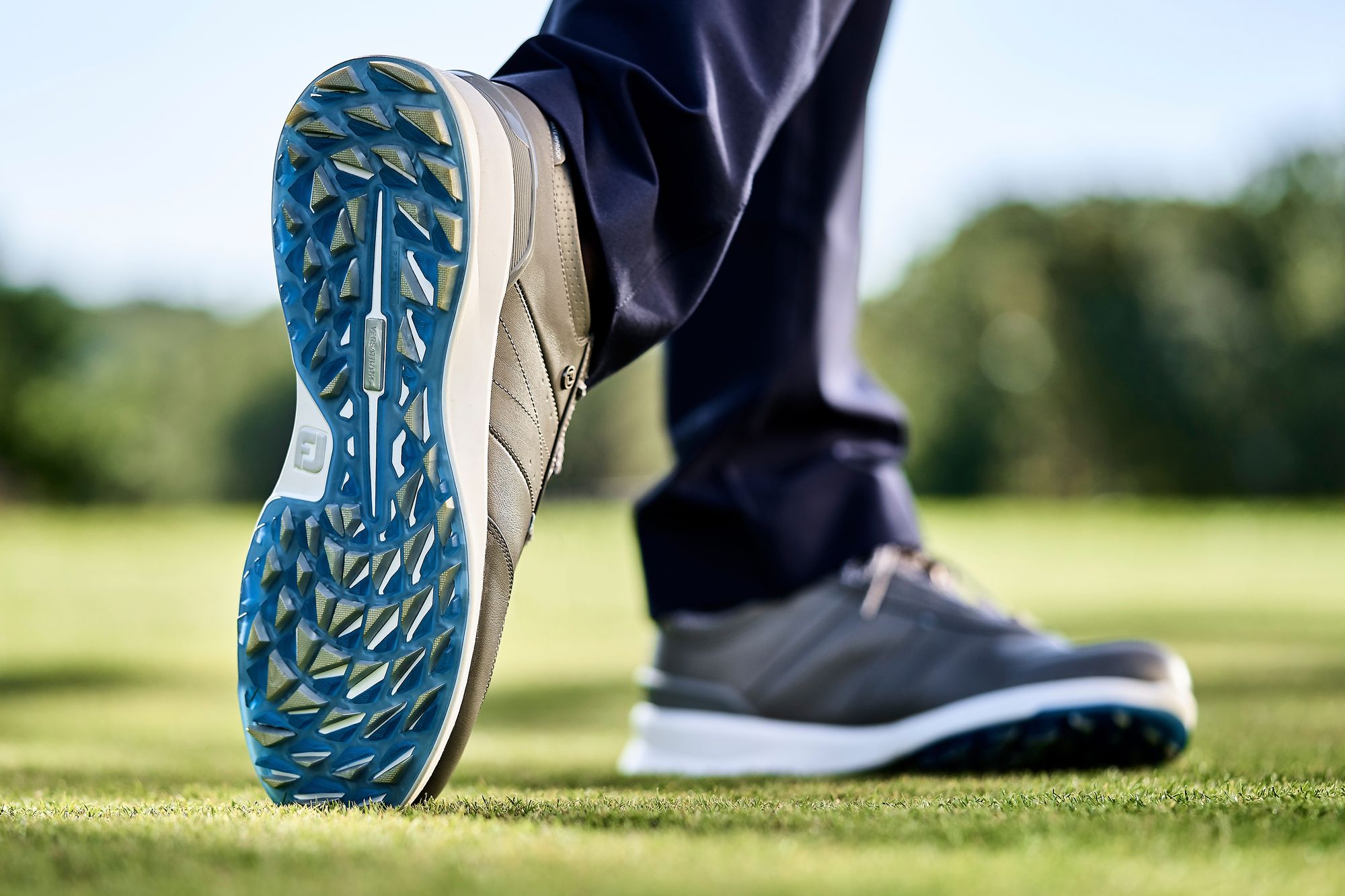 The FJ Stratos innovation package results in Tour-level on-course performance and was named a top-rated, best-in-class shoe in Cornell University’s recent turf grass/green friendliness testing.