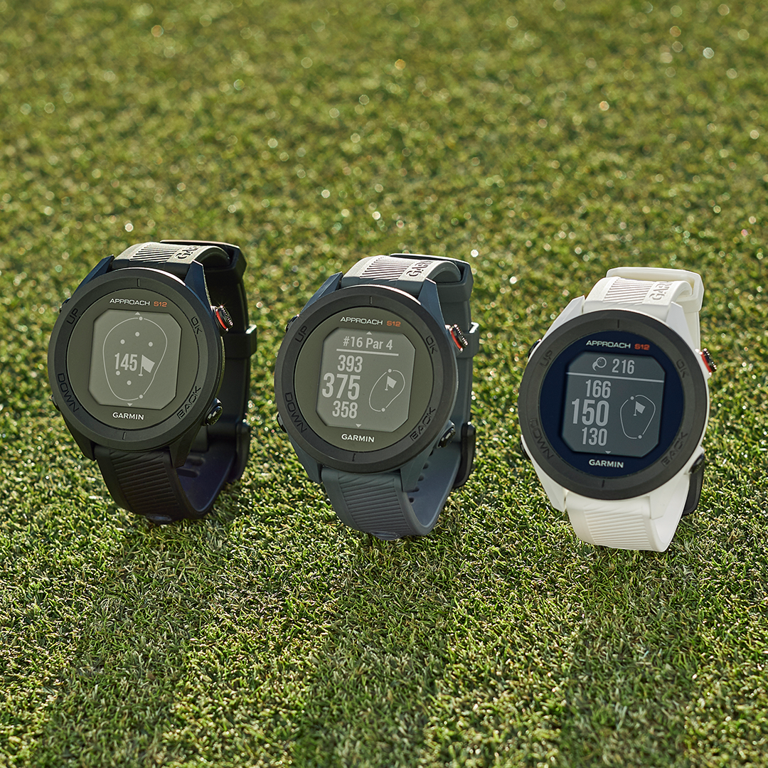 Garmin have your game with Approach® S12, a golf watch designed to turn on when you tee off. Get key yardages to the green, as well as to hazards and doglegs, on 42,000 preloaded courses worldwide. Keep score from the watch itself and upload directly to the Garmin Golf™ app1to participate in weekly leaderboards. Pair with optional Approach® CT10 club tracking sensors (sold separately) for more automatic game tracking capabilities. Play longer with a battery life that holds up — get up to 30 hours in GPS mode.