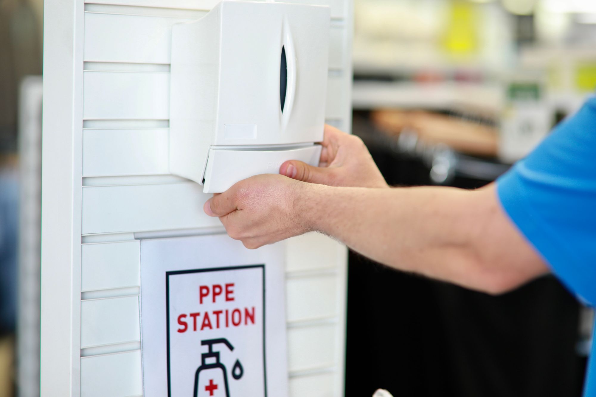 - Every store will have a designated PPE station with sanitiser, gloves and masks for customers to help themselves to on entry