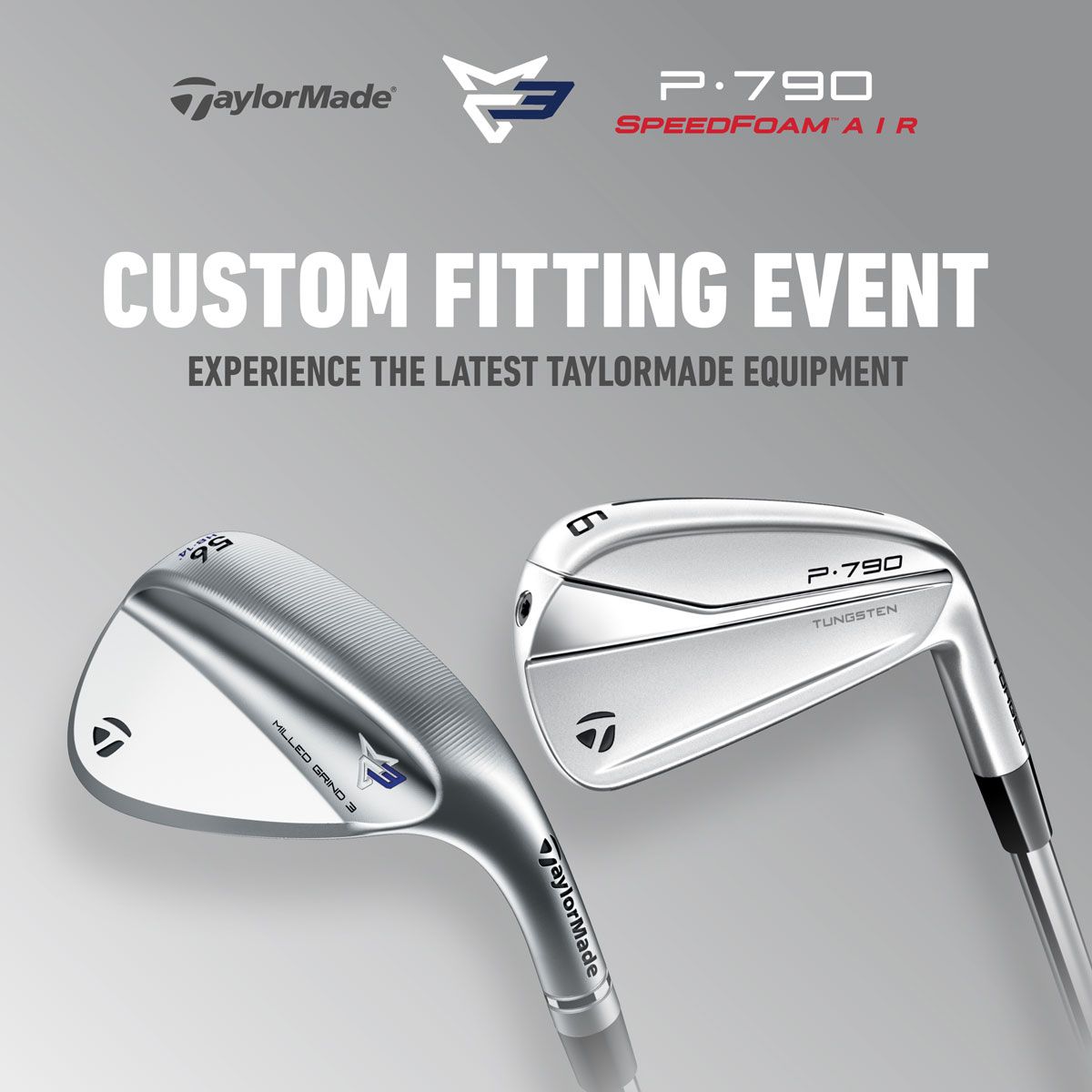 Here's your opportunity to try the latest P790 Irons, MG3 Wedges or the SIM2 driver! TaylorMade's tech specialists will be at hand to guide you through their full range and advise you on what clubs are most suitable for you.