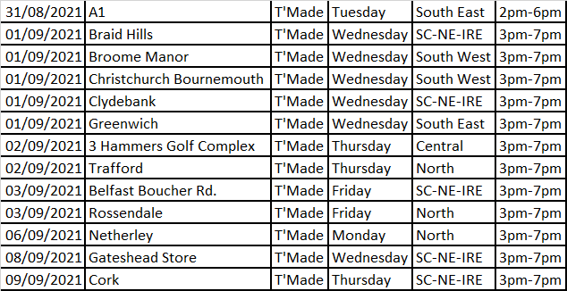 Fancy it? Below you will find all of our events near you within the different regions and the phone number of each store to call to get yourself booked in!