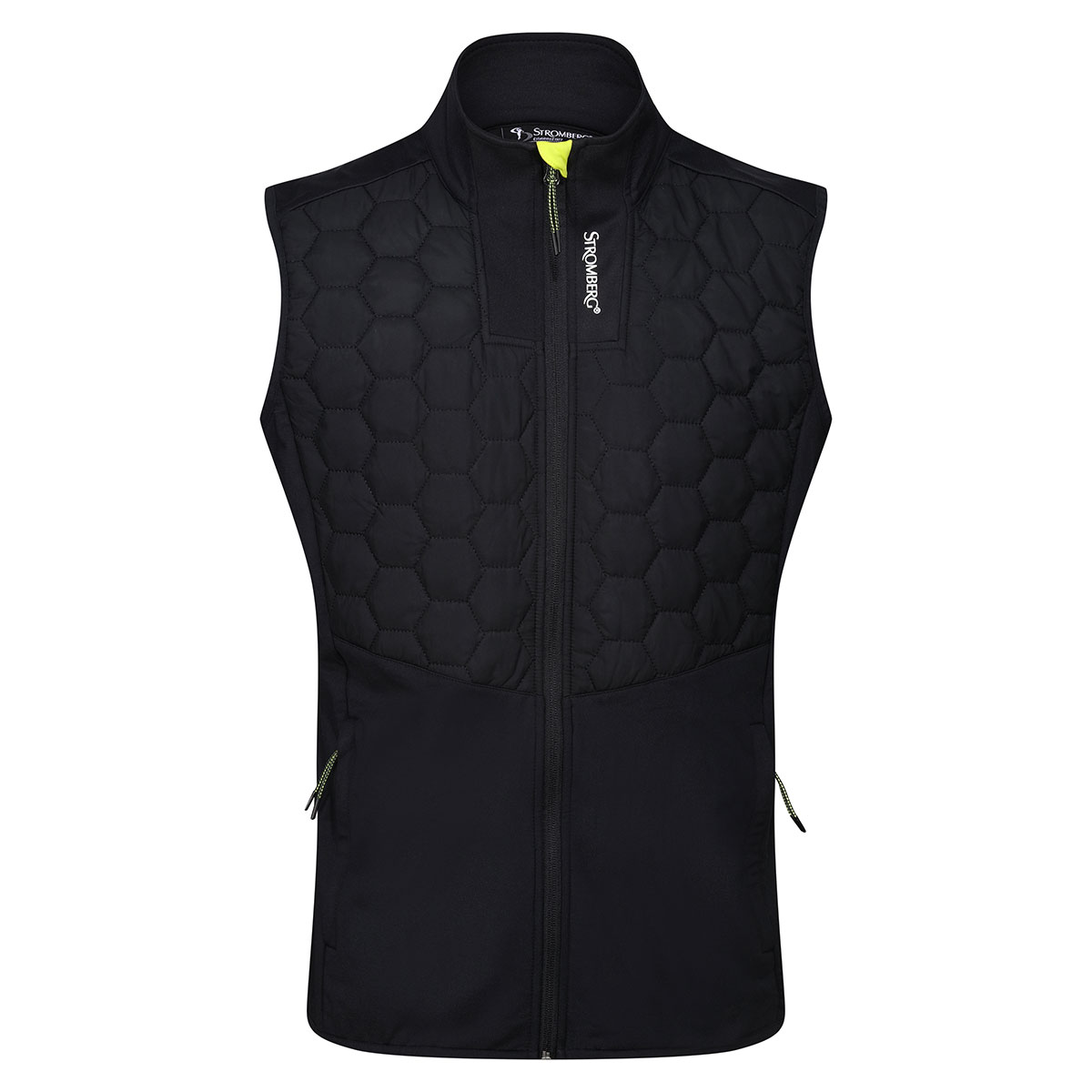 Stromberg is a specialist company, based in West Yorkshire, proud of its tradition of innovation, and that its golf clothing range is designed and made by golfers, for golfers. This quilted gilet features a brushed fleece interior lining for essential warmth, and a water-resistant hexagon quilted body made from performance fabric that allows complete freedom of movement. It has a full-zip opening and two zip opening side pockets which feature extra long tabs on the zips so you can access them without having to take off gloves or mittens. It features a high collar to keep your neck warm while the obvious advantage of a gilet over a jacket is that the absence of sleeves allows for a full, unhindered swing while your torso remains toasty-warm. Available in sizes S-XL, it comes in black with Stromberg branding.